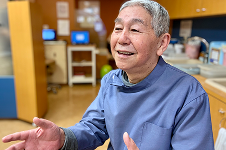 1984年(昭和59)、万代に開院して、現在は親子二代で診療しています。モットーは、よくコミュニケーションをとる!です。